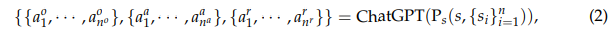Ps(·) is a prompt that can instruct ChatGPT to generate three kinds of atomic facts, and corresponding details can be found in Appendix A.