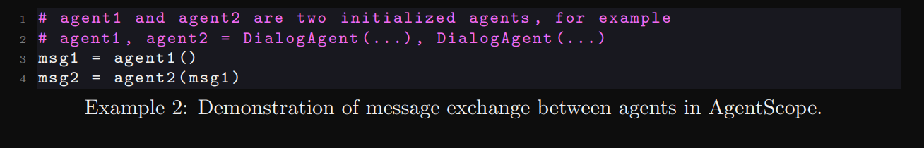 • Agent Layer: AgentScope의 핵심은 에이전트 추상화 계층으로, 이는 다중 에이전트 워크플로우의 중추를 이루며 상호 작용과 커뮤니케이션의 주요 엔티티입니다. 이 계층은 복잡한 워크플로우의 구축을 용이하게 하고 사용성을 향상시키며, 개발자의 프로그래밍 부담을 줄입니다. AgentScope는 간소화된 문법과 도구를 통합하여 개발자들이 LLM의 기능을 활용한 에이전트 기반 애플리케이션의 구현 및 최적화에 집중할 수 있도록 지원합니다. 프로그래밍 기능과 문법 sugar에 대한 자세한 내용은 섹션 3에서 소개됩니다.