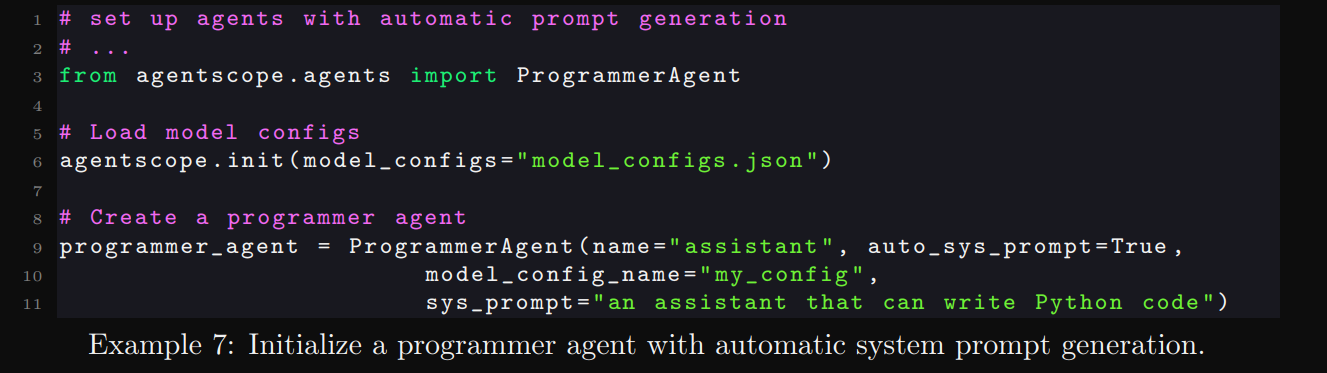 Agentscope는 rich set of built-in resources, including services, dedicated agents, and pre-configured examples를 구비하고 있다. 이는 초기 세팅이나 배포,빠른 prototyping을 쉽게 만든다