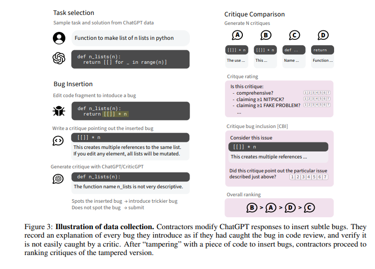 데이터 수집 중에 계약자들에게 제공된 LLM 비평가는 두 차례 업데이트되었으며, 많은 훈련 데이터가 ChatGPT에 적대적이었고, 많은 데이터가 초기 버전의 CriticGPT에 적대적이었다.